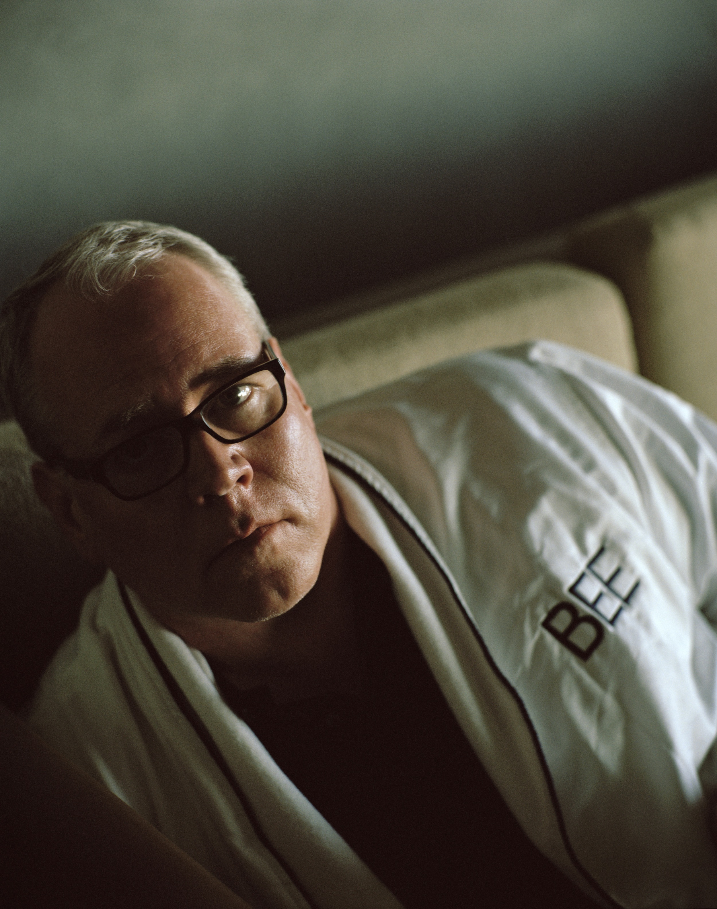 Lui è scalzo, gentile, gonfio, però con una bella faccia, una tuta, dei piedoni bianchi bianchi, come la facciata del palazzo che guarda lontano e il top della cucina di laminato, su cui stanno: un portafoglione con due American Express gold e platinum, un portachiavi Bmw, tanti barattoli di integratori, avanzi di un take away di pasta, una macedonia di fragole lasciata lì. Giornali: London Review of Books, Time magazine. Tanti timbri con le iniziali BEE. Nel salottino, una pianola, degli accendini, uno scatolone di magliette. Un maxischermo in cui silenziato va un reality di cuochi, tante cassette di Final Fantasy. «Sono del millennial socialista», sospira lui. «Il millennial socialista è fuori, è andato al tennis». Il millennial socialista si chiama Todd, ha trent’anni, stanno insieme da sette. Non si riesce a trovargli una sistemazione; «non si sa, vedremo, lui sarebbe musicista». Sospira. «Adesso è al tennis. È facile fare i socialisti quando io pago tutto, vabbè, lasciamo perdere». Andiamo nel suo studio, un iMac, libri, moquette, sta bevendo un succo di moj o qualcosa di costoso. I piedoni sotto il tavolo. «Ma stai messaggiando?», dice deluso, mentre si prende appunti sul telefono. Ma no, ti pare.