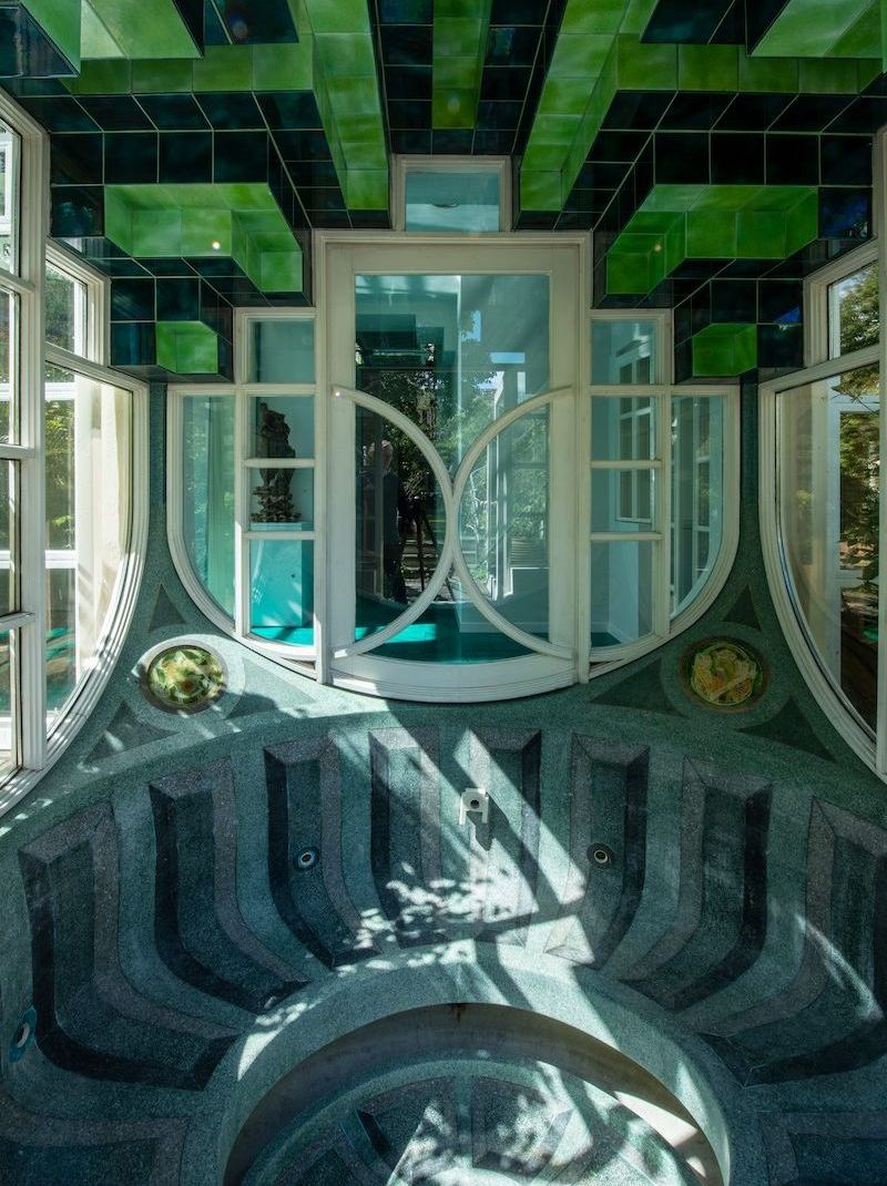 Tempio di simili speculazioni secondo cui l’architettura, soprattutto quella del paesaggio, diviene “cosmica”, modellata cioè da geometrie complesse, da curve e spirali, è la Cosmic House, un progetto di conversione di una villa vittoriana a Holland Park, a Londra, per la quale dal 1978 ha inizio una collaborazione tra Charles e la moglie, Maggie Jencks, e l’architetto Terry Farrell con il contributo di Piers Gough, Eduardo Paolozzi, Michael Graves e altri: tutti insieme con l’obiettivo di creare una casa privata che serva anche come dimora spirituale del Postmoderno, e che accolga quindi conversazioni con i principali architetti e pensatori dell’epoca. L’eredità dello storico, critico, architetto e paesaggista aprirà ora al pubblico per la prima volta (dal 24 settembre, ci si prenota qui) grazie a un nuovo progetto di riconversione che ha trasformato la Cosmic House in uno spazio espositivo e di archivio, volto a ospitare mostre e conferenze.