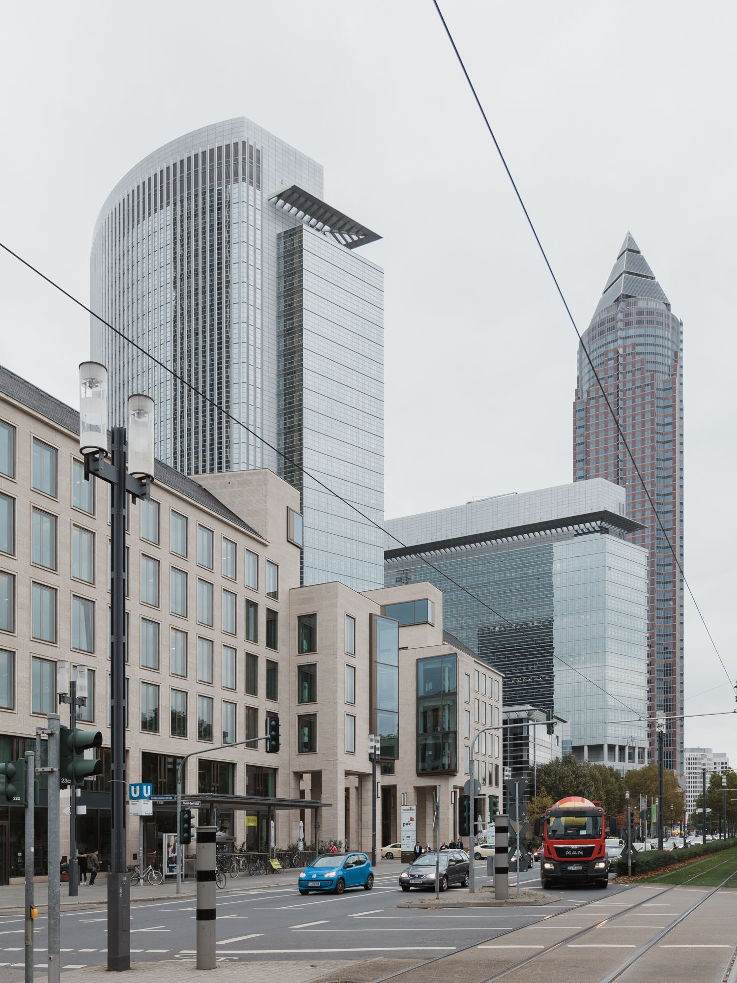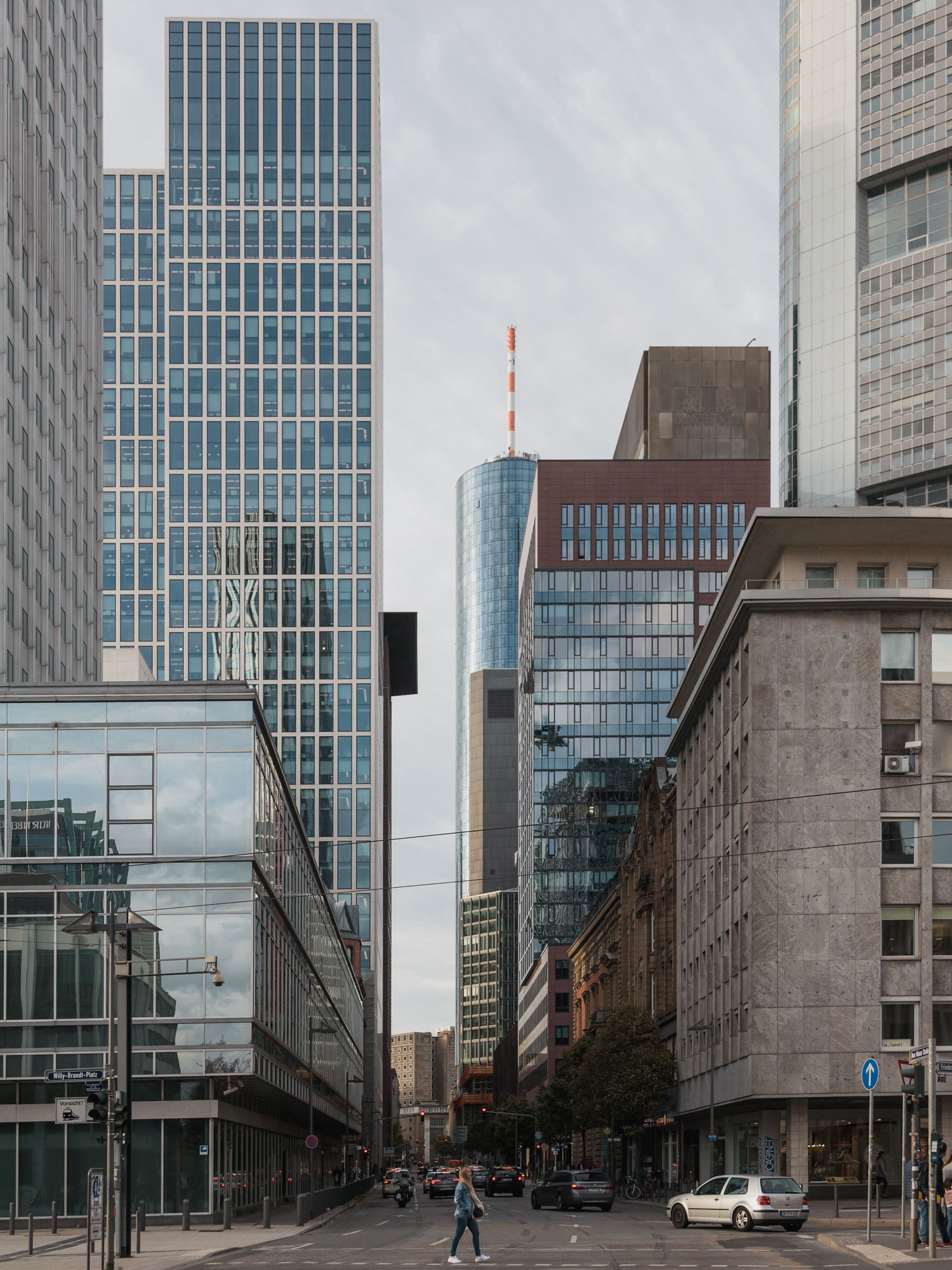 Fa un certo effetto pensare che la ricostruzione postbellica sta continuando oggi. Eppure non è questa l’unica ragione per cui si sta edificando tanto. Da quando il Regno Unito ha deciso per la Brexit, Francoforte spera di diventare il polo finanziario dell’Europa, più di quanto non lo sia già. Tra banche, servizi e agenzie europee, decine di migliaia di lavoratori lasceranno Londra: secondo Bloomberg saranno quarantamila. Francoforte punta ad accaparrarsene una buona fetta, e in questo è in competizione con Parigi, Dublino e Milano. È una rivalità in parte apparente, perché va da sé che i posti della finanza londinese andranno ridistribuiti in varie città; ma pur sempre una gara di cui la città va fiera, e in cui è convinta di essere in vantaggio: la Goldman Sachs, che oggi impiega circa 200 persone a Francoforte, ha firmato un contratto d’affitto per un enorme spazio capace di ospitarne almeno mille, nel cuore della cosiddetta “Mainhattan”, come i tedeschi chiamano, un po’ con affetto e un po’ a mo’ di sfottò, il distretto finanziario.