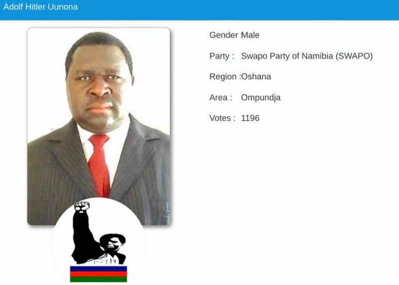 Si vota il 26 novembre e il consigliere dallo sfortunato nome è praticamente certo di essere rieletto nel consiglio regionale dell'Oshana.